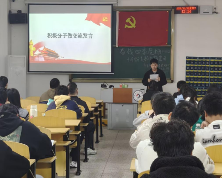 交流发言环节氛围热烈、亮点纷呈。党员同志程浩、唐珍结合学习所得与自身实践,分享思想感悟与行动蓝图,充分彰显党员先锋模范带头作用;入党积极分子金诗怡、邓世帅围绕学习收获与成长规划畅谈体会,坚定表达向党组织靠拢的决心与信念,真挚的发言引发全场共鸣。