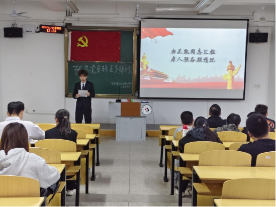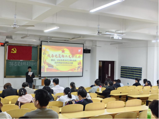随后,五名预备党员依次登台汇报。他们围绕预备期内的思想淬炼、理论学习成效、工作实践表现及生活作风建设等方面,全面复盘成长历程,深情回顾党组织的悉心培养,深刻剖析自身在理论深度、实践能力等方面存在的不足,同时坚定表达了恪守入党初心、锤炼过硬党性、争做合格党员的决心。汇报内容真挚务实、信念坚定,展现出新时代青年党员的责任担当,赢得现场师生的阵阵掌声。