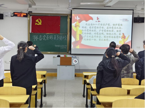 方腾书记现场宣读支部大会决议,对五名同志如期转正表示热烈祝贺。他强调,转正既是政治身份的升级,更是责任使命的加码,希望大家以此次转正为新起点,持续深化党的创新理论学习,不断加强党性修养,严守党的纪律规矩,在学习科研、志愿服务、校园建设等各项工作中勇挑重担,以先锋模范作用践行入党誓言,用实际行动诠释共产党员的初心使命。