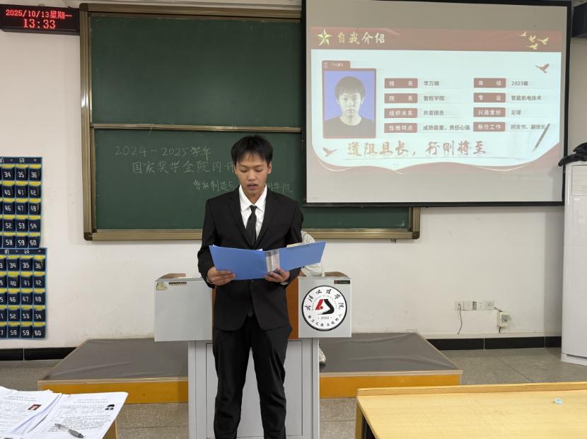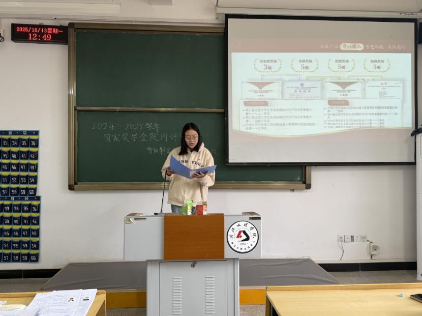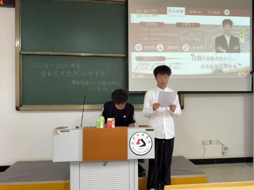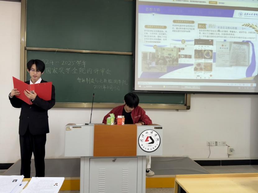为激励全院学子奋发向上、追求卓越,充分发挥榜样的示范引领作用,10月13日,智检学院2024-2025学年国家奖学金评审大会,在4栋501教室隆重举行。学院党总支书记韩玮、教学副院长张莹携同辅导员们组成评审团,共同为本次选拔工作把关。大会现场,申报学子们个个精神饱满,准备迎接这场实力的检验。