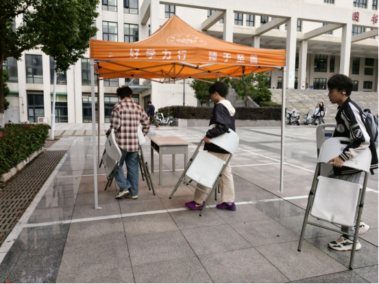 活动筹备阶段,学院学生会干事们分工明确、高效协作,全面推进场地布置工作。大家各司其职,有的精准搭建活动棚架、醒目悬挂主题横幅,让活动核心主旨直观呈现;有的细致规划桌椅布局,确保间距规整、排列有序,为同学们营造舒适的活动环境;有的负责物资转运、饮用水补给及活动卡片分发等后勤保障工作。指尖翻飞间,原本空旷的场地逐渐焕发生机,以整洁有序、氛围饱满的面貌,静静等候同学们的到来。