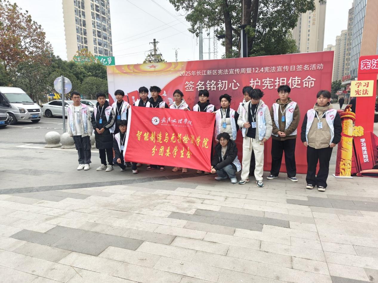近日,长江新区祁盛时光城内暖意融融,武汉文理学院智能制造与无损检测学院学生会志愿者队伍倾力参与的长江新区宪法宣传日活动圆满举办。本次活动以宪法宣传为核心要义,创新融合文化传承与社区联动双重元素,让法治精神在初冬时节浸润人心、落地生根。