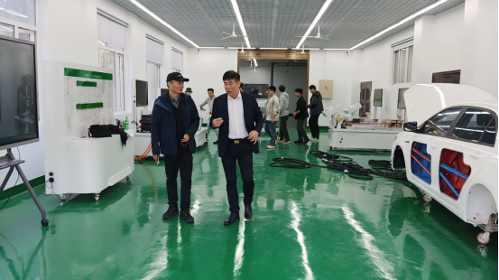 杨灼芳强调,实验室建设是本科教学合格评估的核心观测点,更是培养应用型技术人才的关键载体。他要求学院:一要紧扣评估标准,补齐设施短板,确保生均教学科研仪器设备值、新增设备占比等核心指标达到合格要求,同时优化实验室开放机制,提升场地与设备利用率;二要强化安全底线思维,健全危化品管理、设备操作规程等制度体系,配备完善应急防护设施,定期开展安全演练,筑牢实训安全防线;三要深化产教融合,围绕新能源汽车电池热管理、智能网联测试等前沿领域,推动实训内容与行业岗位标准精准对接,打造“知识学习+模拟训练+实操训练”三位一体的实践教学模式,为学生职业发展筑牢根基。