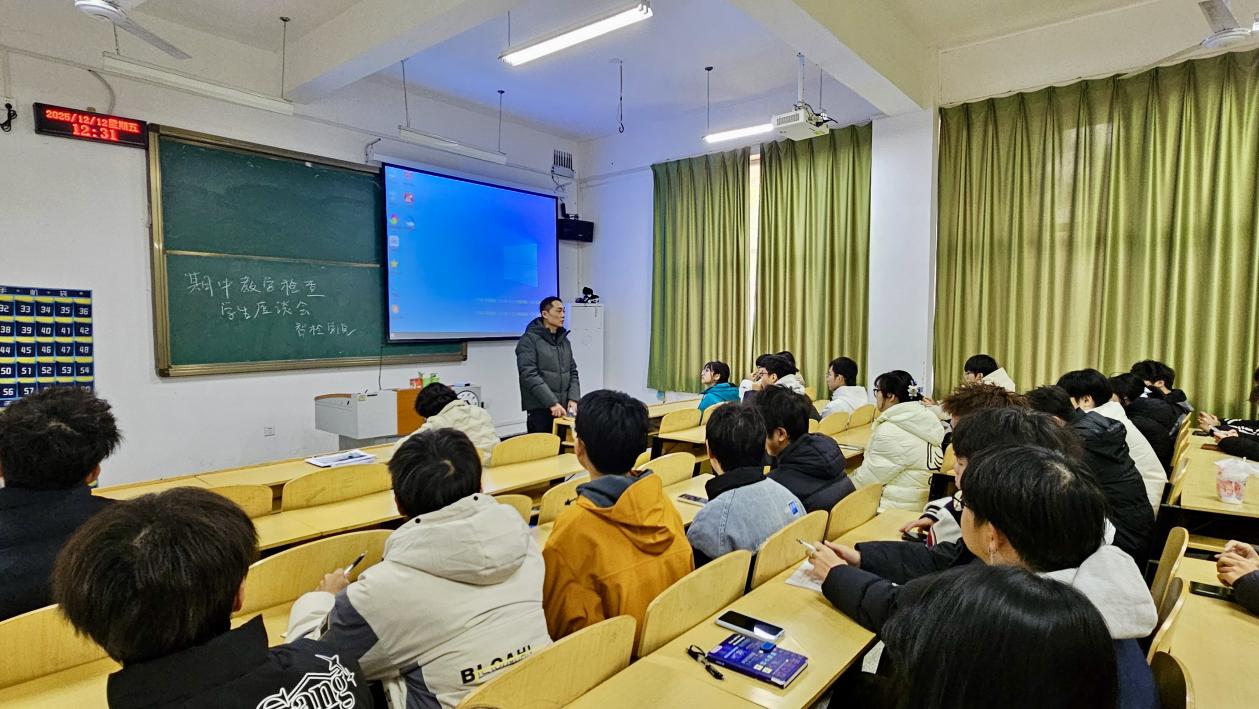 为精准掌握期中教学运行情况,畅通师生沟通渠道,及时回应学生诉求,持续提升教育教学质量,12月12日,智检学院在5栋110教室召开2025-2026学年第一学期期中教学学生座谈会。学院党总支书记韩玮、教学副院长张莹、全体辅导员及各年级各专业学生代表参会,会议围绕教学保障、学习支持、生活服务等核心议题展开深入交流。